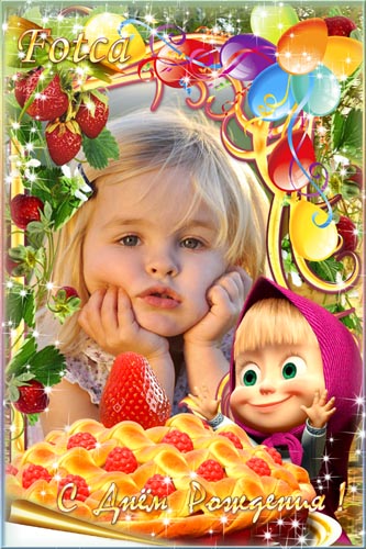Яркая детская рамочка с героиней мультфильма Маша и Медведь - С Днём Рождения PSD , PNG | 300 dpi | 2362 x 3543 | 113 мб Автор : Фотка |