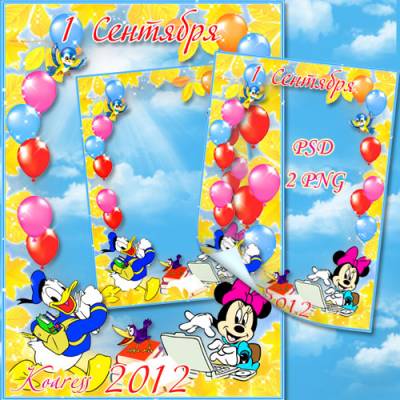 Многослойная школьная рамка для фото - 1 сентября с Дональдом и Минни PSD, 2 PNG | 3770x5332 | 300 dpi | 113,46 MB Автор: Koaress |