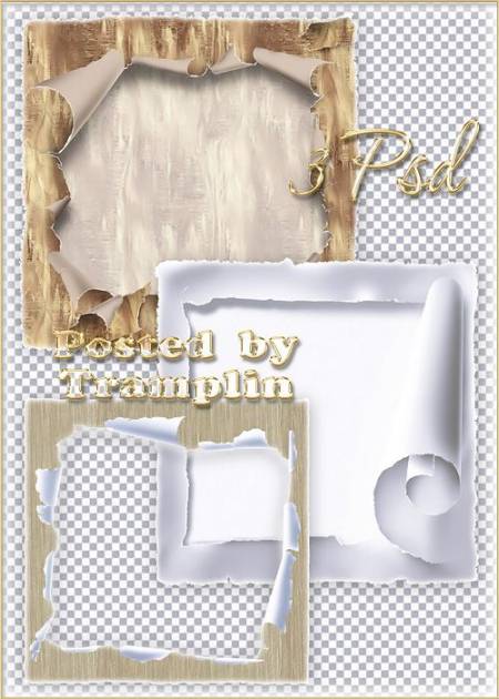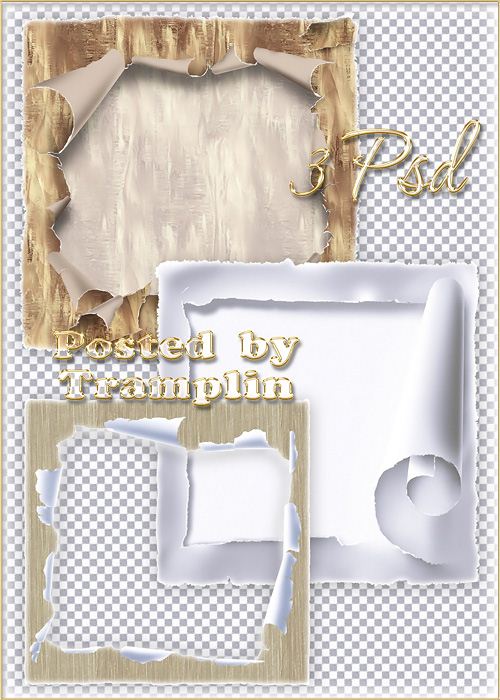 3 Psd исходника - Рваные листы бумаги 3 Psd- каждый элемент на отдельном слое | 1772 x 1772 | 300 dpi | 68,9 MB Автор: Choice - Tramplin |