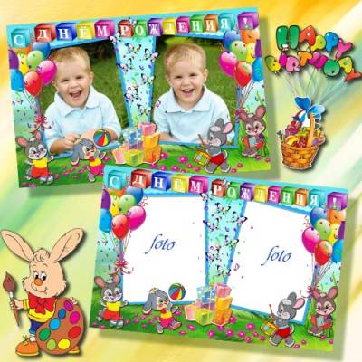 Поздравительная рамка для фото - С Днём Рождения! PSD + PNG | 300 dpi | 2362 x 3543 | 147 мб Автор : Фотка |