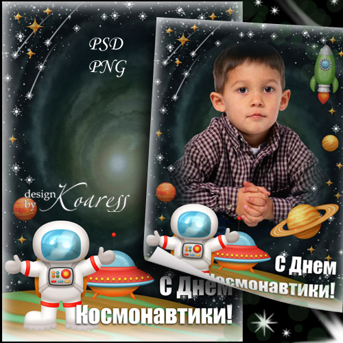 Поздравительная рамка для фотошопа к 12 апреля - Буду космонавтом PSD, многослойный, PNG | 3508x4961 | 300 dpi | 108,22 Mb Автор: Koaress |