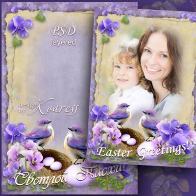 Праздничная весенняя фоторамка с нежными цветами и причьим гнездом - Пасхальные поздравления PSD, многослойный | 3508x4961 | 300 dpi | 124,8 Mb Автор: Koaress |