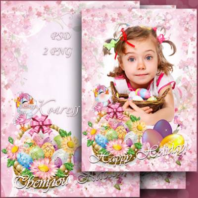 Детская открытка с рамкой для фото - Пасхальный день PSD | 3508x2480 | А4 | 300 dpi | 106,8MB Автор: inna555 Текст русский и английский на отдельном слое |