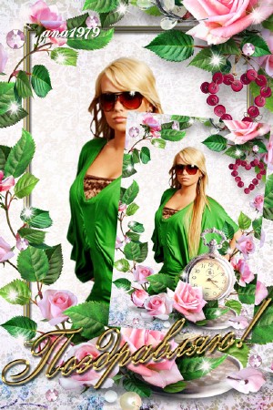 Рамка с розами - Желаю радости всегда PSD | 3000 x 4500 | 300 dpi | 83,45 Мб Дизайн аnа1979 |