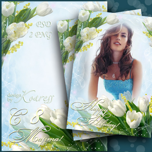 Поздравительная рамка для фото к 8 Марта - Самый теплый день весны PSD, многослойный, 2 PNG | 3508x4961 | 300 dpi | 135,82 Mb Автор: Koaress |