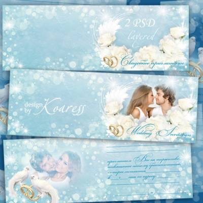 Двухстороннее свадебное приглашение с двумя вырезами для фото - Любящие сердца 2 PSD, многослойные, текст редактируется | 3508x4961 | 300 dpi | 102,6 Mb Автор: Koaress |