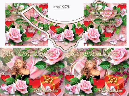 Этикетка на бутылку шампанского – Мое признание 9 х 12 см | 16.22 х 9.75 см | 7,5 х 7,5 см | 39,10 Мб Дизайн ana1979 |