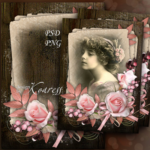 Винтажная романтическая рамка для фотошопа - Очаровательная нежность старых фото PSD, PNG | 3508x4961 | 300 dpi | 153,04 Mb Автор: Koaress |