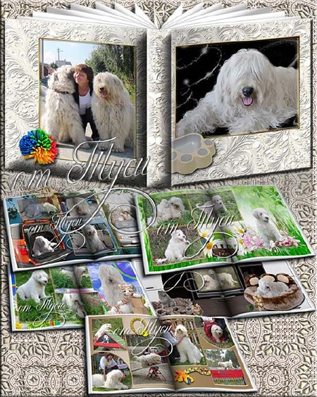 Фотоальбом для домашних питомцев - Мой Любимец 10 PSD | 259 мб | 7205* 3602 | слои отключены Автор: Туся Обложка и 9 разворотов на 34 фото |