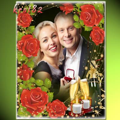 Романтическая рамка с цветами, шампанским и свесами – Две свечи PSD |3420 x 4604| 300 dpi |102 MB автор: krot82 |