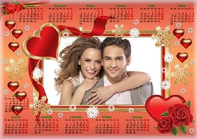 Романтический календарь с рамкой для влюбленной пары на 2014 год PSD | 4961x3508 | 300 dpi | 52 Mb Автор: Anutochkaaa |