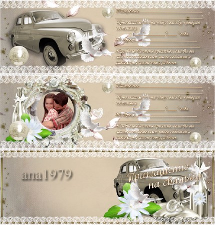 Шаблон приглашения на свадьбу - Наше счастье 2 PSD и 2 PNG | 2362 x 827 | 300 dpi | 23,98 Мб Дизайн ana1979 |