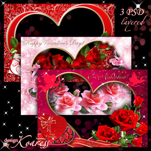 Набор многослойных рамок-валентинок ко Дню Святого Валентина с вырезом в форме сердца 3 PSD, многослойные | 4961x3508 | 300 dpi | 198,02 Mb Автор: Koaress |
