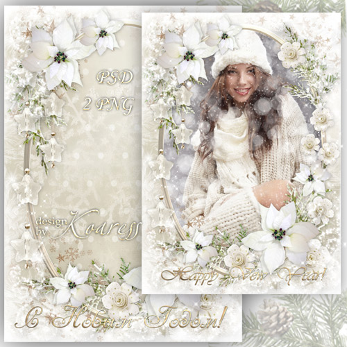 Зимняя поздравительная рамка для фото - Серебристый снег PSD, многослойный, 2 PNG | 3508x4961 | 300 dpi | 154,76 Mb Автор: Koaress |