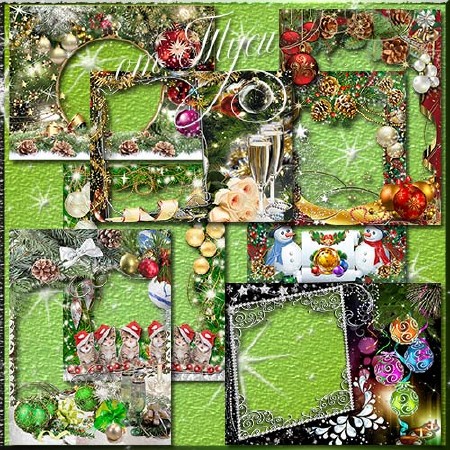Набор новогодних рамок - Пусть взгляд от радости сияет и счастьем светятся глаза 7 PNG | 104 мб | 3600х4800 | 300 dpi Автор: Туся |