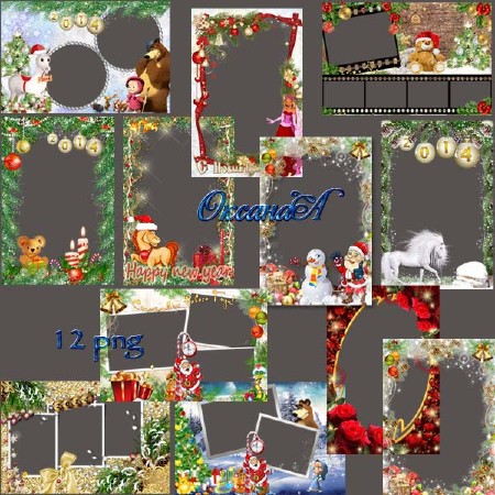 Новогодний набор фоторамок – Здравствуй, 2014 год 12 PNG | от 3661x2421 до 3543 x5315 | 300 dpi | 195 Mb Автор: ОксанаА. |