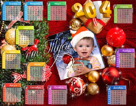 Офисный настольный календарь на 2014 год для дома с рамкой для семейной фотографии PSD | 3508x4961 | 300 dpi | 61 Mb Автор: Anutochkaaa |