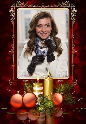 Новогодняя рамка со свечами бликами шарами и еловые веточки PSD | 1 шт | 3433x4970 | 300 dpi | Слои раздельно | 62.99 MB Автор сборки : soch |