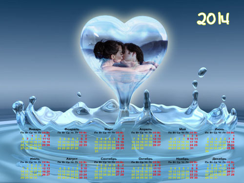 Рамка для фотомонтажа и календарь 2014 - Капелька в виде сердца PSD | 2000x1500 | 300 dpi | 17 мб Автор: Alexey84 |