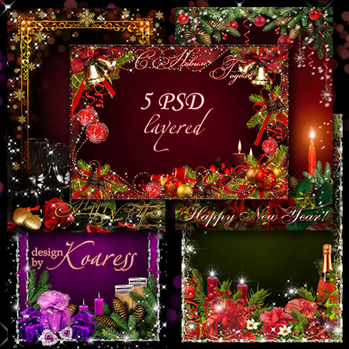 Набор многослойных поздравительных рамок для фото со свечами - Романтический Новый Год 5 PSD, многослойные | 4961x3508 | 300 dpi | 267,12 Mb Автор: Koaress |