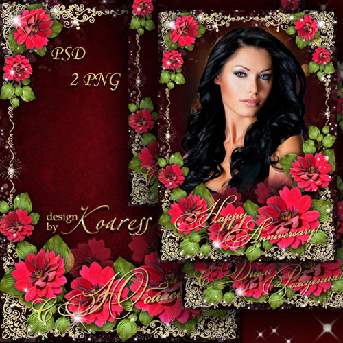 Поздравительная фоторамка с красными цветами для фотошопа - С Юбилеем, с Днем Рождения PSD, многослойный, 2 PNG | 3770x5332 | 300 dpi | 152,26 Mb Автор: Koaress |