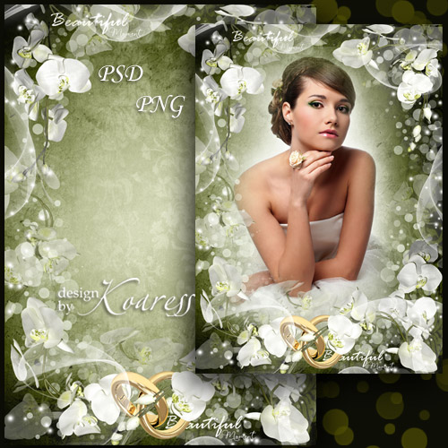 Свадебная романтическая рамка для фото - Чистота и нежность орхидеи белой PSD, многослойный, PNG | 3508x4961 | 300 dpi | 143,44 Mb Автор: Koaress |