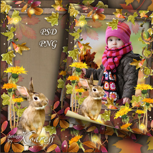 Детская рамка для фото - Прогулка по осеннему лесу PSD, многослойный, PNG | 3508x4961 | 300 dpi | 121,83 Mb Автор: Koaress |