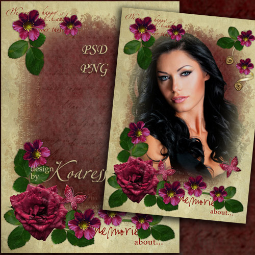Романтическая женская рамка для фотошопа с бордовыми цветами - Прекрасные воспоминания PSD, многослойный, PNG | 3508x4961 | 300 dpi | 134,56 Mb Автор: Koaress |