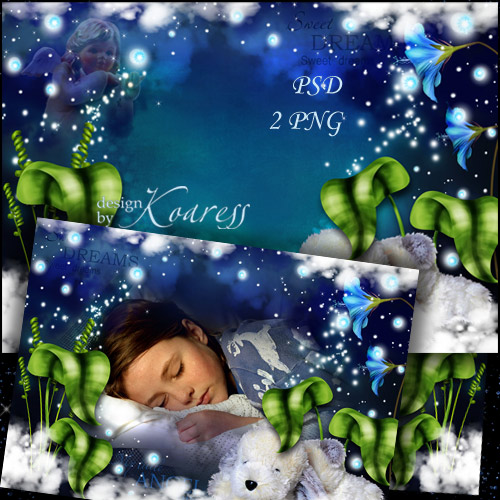 Детская рамка для фотошопа - Маленький мой ангел, сладких снов PSD, многослойный, 2 PNG | 4961x3508 | 300 dpi | 103,85 Mb Автор: Koaress |