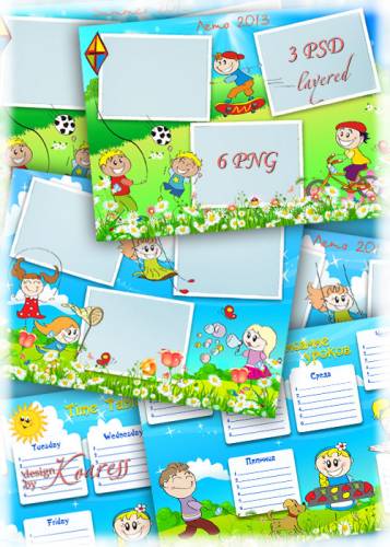 Набор из 2 детских рамок для фото плюс расписание уроков - Как мы провели лето 3 PSD, многослойные, 6 PNG | 4961x3508 | 300 dpi | 114.34 Mb Автор: Koaress |