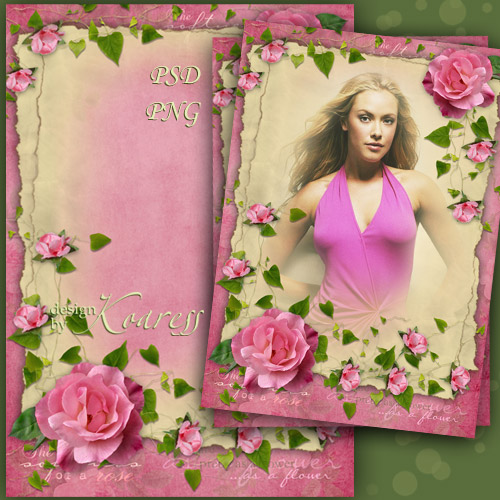 Винтажная женская рамка для фото с розовыми розами - Очарование винтажных фото PSD, многослойный, PNG | 3508x4961 | 300 dpi | 135,77 Mb Автор: Koaress |