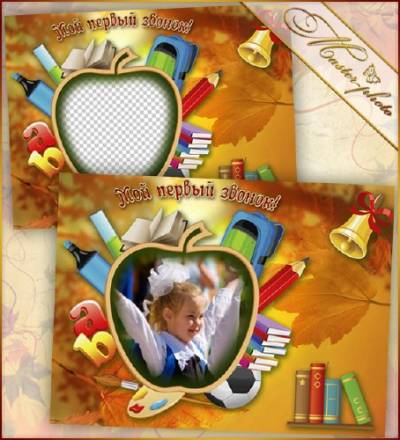 Школьная рамка для фото - На урок меня зовёт переливчатый звонок PSD | 57.2 мб | 3600х4800 | 300 dpi | многослойная | слои отключены Автор: Туся 2 варианта |