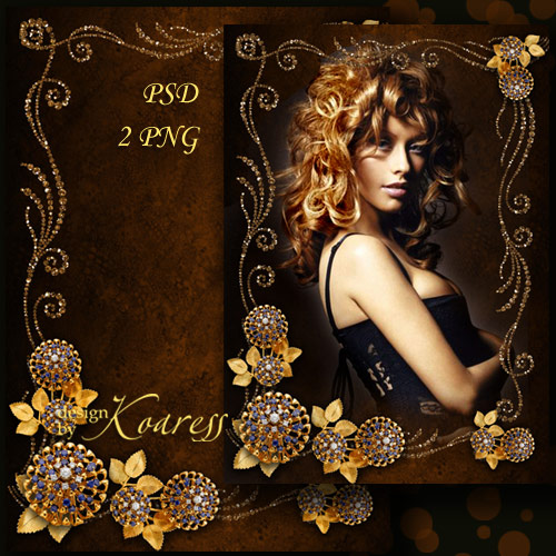 Рамка для фотошопа - Золотой орнамент на портрете PSD, многослойный, 2 PNG | 3508x4961 | 300 dpi | 101,87 Mb Автор: Koaress |