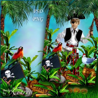 Детская фоторамка - В джунглях острова сокровищ PSD, многослойный, PNG | 3508x4961 | 300 dpi | 127,95 Mb Автор: Koaress |