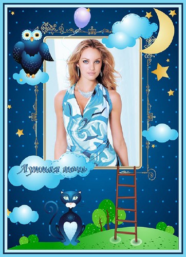 Фотошоп рамка лунная ночь с совой и котом PSD | 1 шт | 3820x5275 | 300 dpi | Слои раздельно | 70.81 MB Автор сборки: soch |