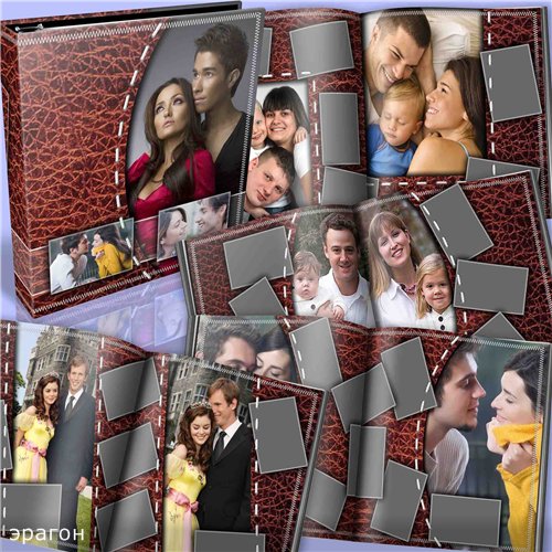 Фотокнига для фотографий из кожаной текстуры PSD | 6300x3450 | 300 dpi | 282 Мб Количество: 1 обложка, 4 разворота Автор: эрагон |