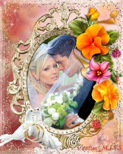 Свадебная фоторамка с нежными цветами,блеском и голубями PSD | 3150 х 3937 | 300 dpi | 125 мб Автор:Vasilisa_miss |
