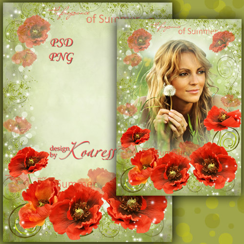 Цветочная рамка для летних фото - Нежный лета аромат PSD, многослойный, PNG | 3508x4961 | 300 dpi | 124,62 Mb Автор: Koaress |