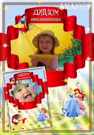 Диплом именинницы с принцессами Уолта Диснея PSD | А-4 | 300 dpi | 79,60 Мб Дизайн ana1979 |