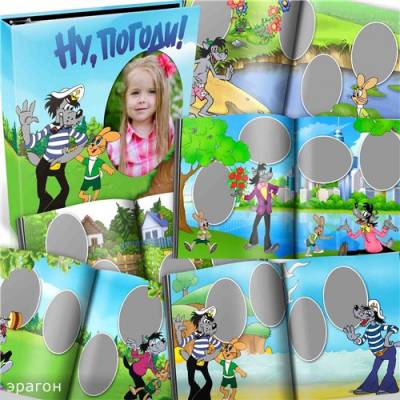 Детская фотокнига для фотографий – Ну, погоди PSD | 6300x3450 | 300 dpi | 359 Мб Количество: 1 обложка, 5 разворотов Автор: эрагон |