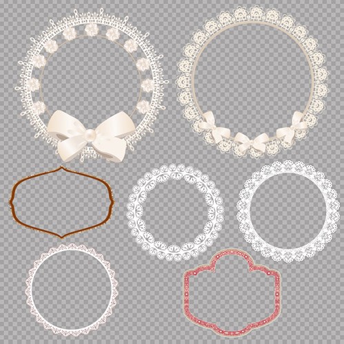 Рамки вырезы из кружевов с узорами и бантами на прозрачном фоне PSD, слои раздельно | количество 7 | max 5720 x 5720 | 300 dpi Размер: 58,10 Мб |