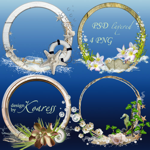 Многослойные рамки-вырезы для фотошопа - Море, лето, каникулы PSD, многослойный, 4 PNG | 5000x5000 | 300 dpi | 182.46 Mb Автор: Koaress |