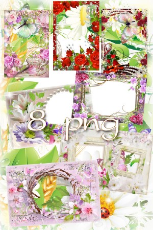 Сборник рамок в png – Цветы лета 8 PNG | 3000 х 4500 | 300 dpi | 106,38 Мб Дизайн аnа1979 |