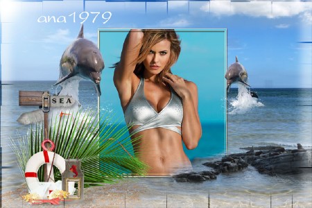 Рамка для фотошопа - Море и дельфины PSD | 3000 x 4500 | 300 dpi | 77,09 Мб Дизайн аnа1979 |