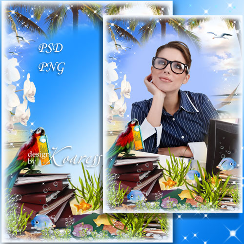 Романтическая рамка для фотошопа - Мечтая об отпуске PSD, многослойный, PNG | 3508x4961 | 300 dpi | 116,78 Mb Автор: Koaress |