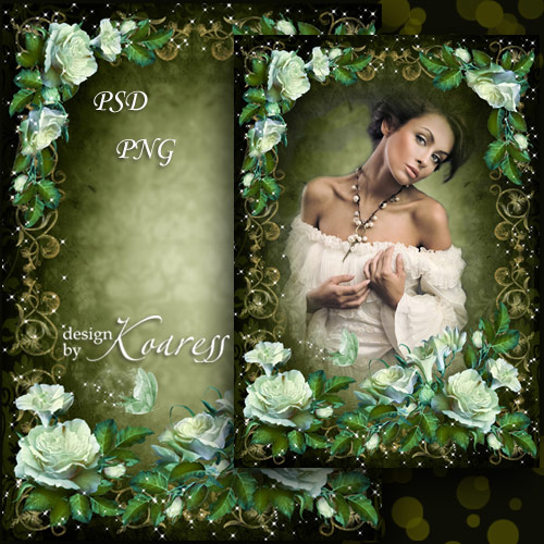Женская романтическая фоторамка - Белые винтажные цветы PSD, многослойный, PNG | 3508x4961 | 300 dpi | 110,57 Mb Автор: Koaress |
