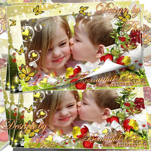 Рамка для фото с цветами - Прекрасное утро PSD | 300 dpi | 2362 x 3543 | 57 мб Автор: Фотка |
