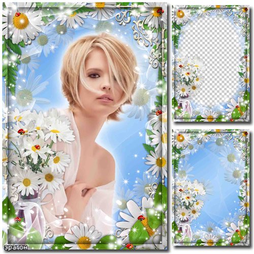 Цветочная рамка для фото – Белые ромашки PSD, PNG | 3000x4500 | 300 dpi | 109 Мб Автор: эрагон |
