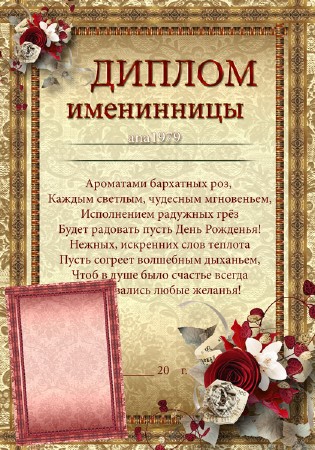 Диплом именинницы - Чтоб в душе счастье было всегда PSD | 2480 x 3543 | 300 dpi | 76.09 Мб Дизайн аnа1979 |