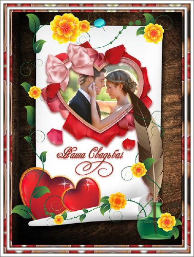 Многослойная фотошоп рамка Наша свадьба пером с чернилами PSD | 1 шт | 3167x4200 | 300 dpi | Слои раздельно | 103,67 Мб Автор сборки: soch |